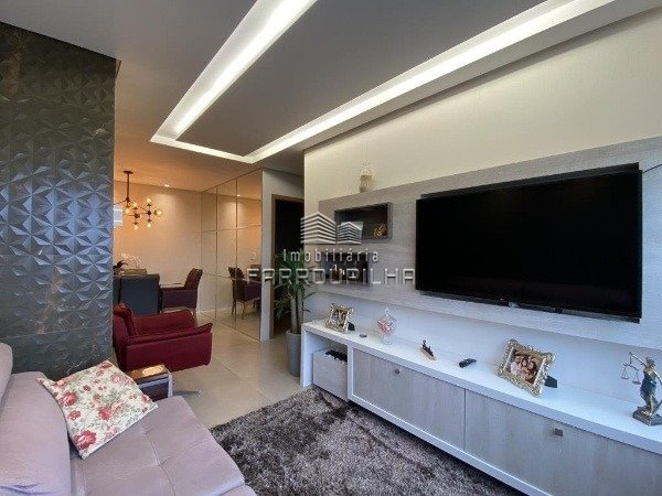 Apartamento belíssimo semi mobiliado! O imóvel conta com dois dormitórios, sala/cozinha integradas, área de serviço, banheiro social, churrasqueira e box de garagem. Permanece no imóvel todos os móveis sob medida.